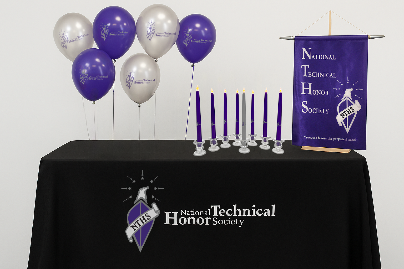 Black or Purple Fabric Table Covers with prominent NTHS logo displayed. Will fit a 6-8 foot table. Dimensions: 120″ long, 75″ wide. Great for all your NTHS functions!